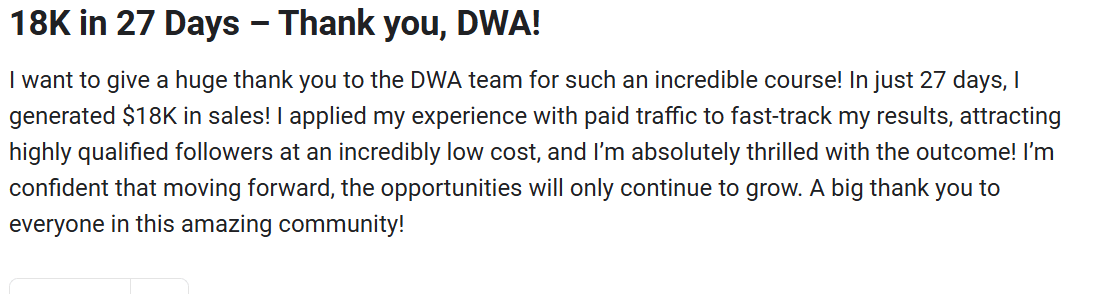 Learn how to promote The DWA course or any other product. This will teach you how to quickly grow your audience and make sales via social media marketing.